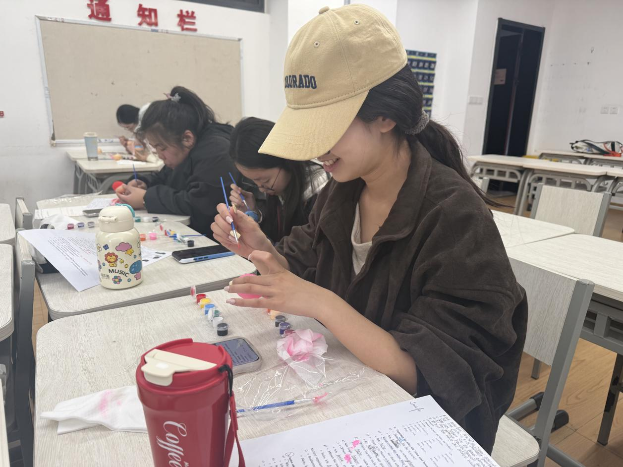 彩蛋手绘初体验,德语词汇“跃”上蛋壳。活动伊始,外教以生动有趣的德语课堂开场,用简单易懂的德语词汇介绍复活节的起源与习俗——Ostern(复活节)、Osterei(彩蛋)、Farbe(颜色)、Kreativität(创意),配合趣味手势和互动提问,瞬间点燃同学们的参与热情。