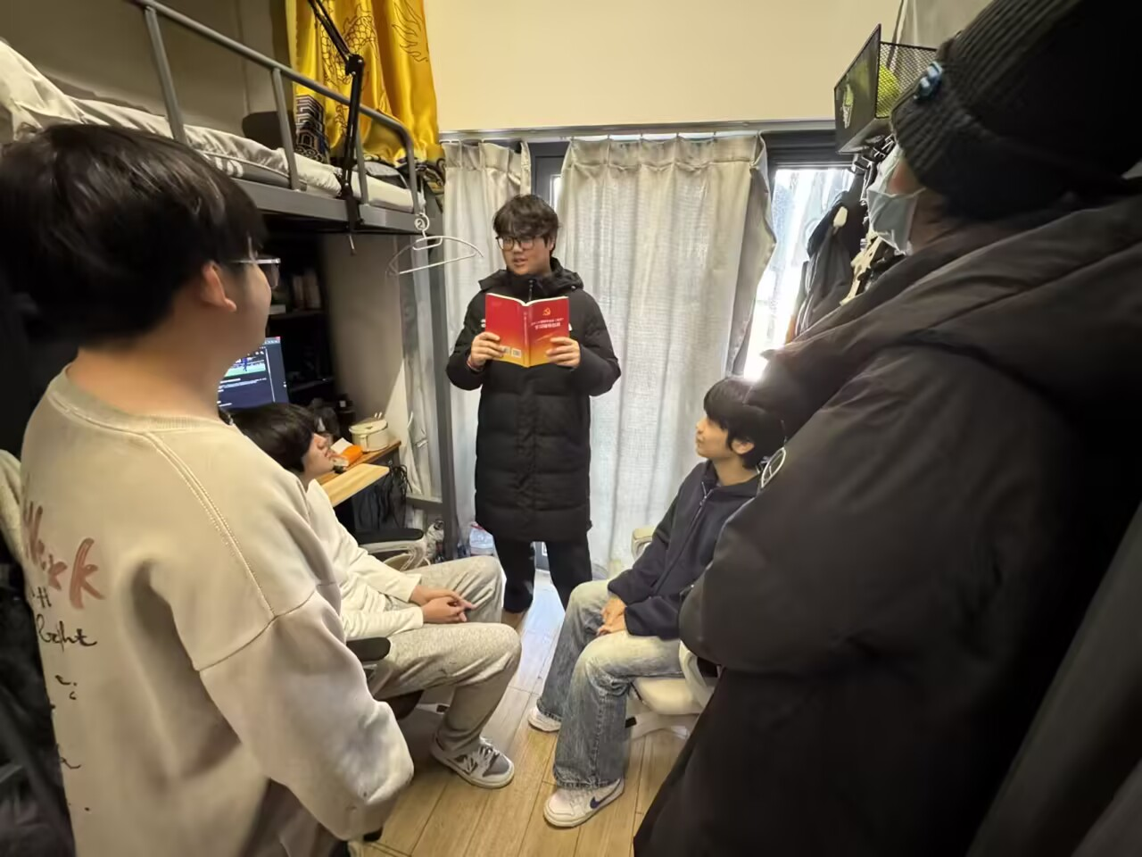 本次活动以学生党员为关键节点和核心领学员。每位党员不仅组织所在宿舍成员开展学习,还主动联系、带动所负责的入党积极分子宿舍和普通宿舍,形成了“一人领学、多寝联动”的网格化学习模式。各学习单元采取了原文精读、要点解读、观看专题片、热点讨论等多种形式,围绕国家治理、法治建设、青年使命等与全会精神紧密相关的话题进行了深入学习和交流。党员同学们带头分享心得,引导宿舍成员结合国际视野、专业发展与个人规划,探讨如何将国家大政方针转化为青春奋斗的实际行动。