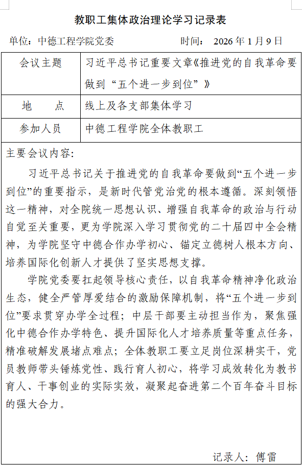 2026年1月教职工集体政治理论学习