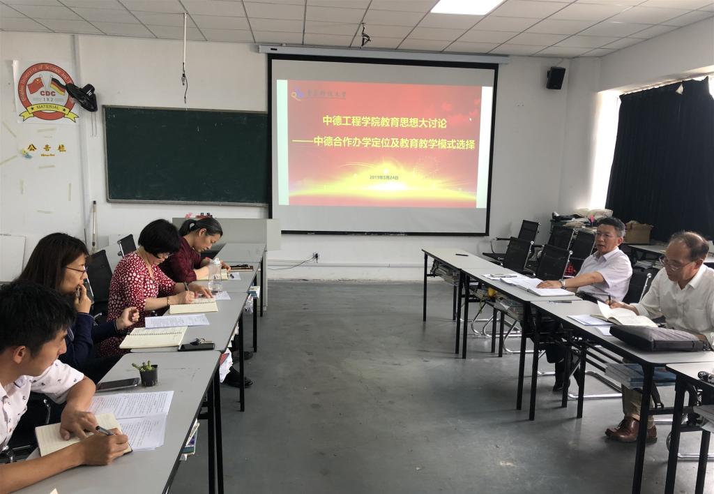5月24日下午,中德工程学院在弘毅楼C404召开教育思想大讨论“中外合作办学定位及教育教学模式选择”主题讨论会。学院党政领导,各教研室、办公室和分团委相关负责人参加了讨论会,讨论会由院长岳学海主持。