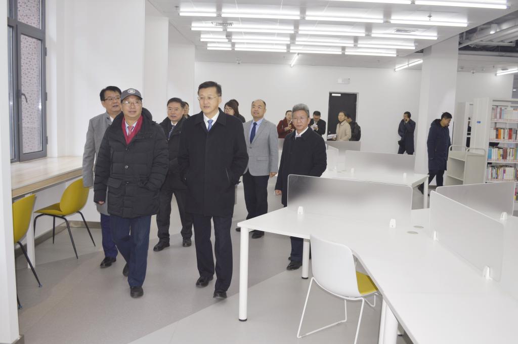 上午10:00,在青岛市政协主席杨军的陪同下,中国前驻德大使史明德一行来校区参观指导。在校区管委会副主任张宜恒的引导介绍下,史明德一行参观了校园、教学楼计算机房、图书馆和中控室,并在教学楼二楼平台听取了实验楼建设进展情况汇报以及中德青年科学院筹建推进情况介绍。史明德对中德校区卓有成效的发展表示赞赏,他指出,校区建设已经迈出坚实步伐,后期要合理规划、加快建设、乘势而上、顺势而为,突出中德双元特色,推动中德青年科学院建设行稳致远,为2020年中德对话论坛成果落实提供有力支撑。