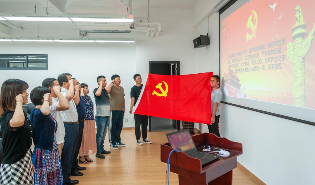 面对鲜红的党旗,校区全体党员紧握右拳,郑重宣誓:“我志愿加入中国共产党,拥护党的纲领,遵守党的章程,履行党员义务,执行党的决定,严守党的纪律,保守党的秘密,对党忠诚,积极工作,为共产主义奋斗终身,随时准备为党和人民牺牲一切,永不叛党。”铿锵誓言在党员活动室内久久回荡,让所有党员更加坚定牢记自己的庄严承诺,在工作中以师生利益为重,不忘初心,牢记使命,永守入党初心,时刻以党员的标准严格要求自己、时刻以党员的先进性鞭策激励自己,坚定理想信念,履行职责,为校区的发展贡献自己的力量,以实际行动兑现对党的庄严承诺。