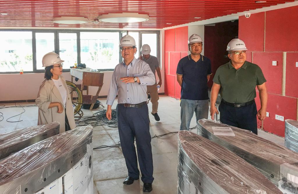 7月8日下午,青岛科技大学中德国际合作区(中德校区)管委会执行主任张宜恒,党总支书记王永波一行前往中德校区二期在建宿舍楼实地检查工程进展。