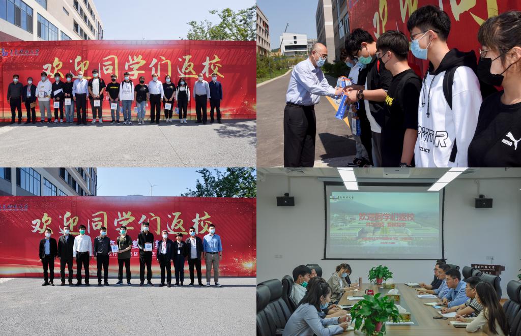 校领导专程来到中德校区看望了首批返校学生,校区领导班子也为全体返校学生发放了防护物品礼包。中德校区共返校学生225名,除1名学生因感冒发烧(已按应急方案处置)外,其他学生身体状况良好。