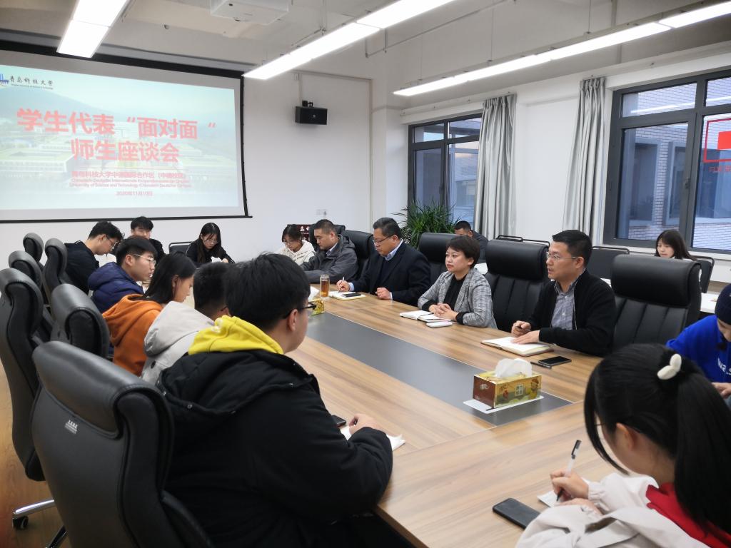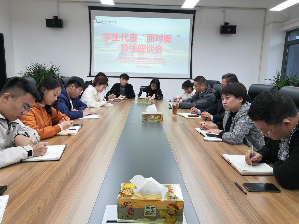 11月10日下午,中德校区学生代表座谈会在J402会议室举行。中德校区党总支书记王永波、党总支副书记刘浩、教学管理办公室主任王莉莉、后勤部门负责人、辅导员老师和学生代表参加了座谈。