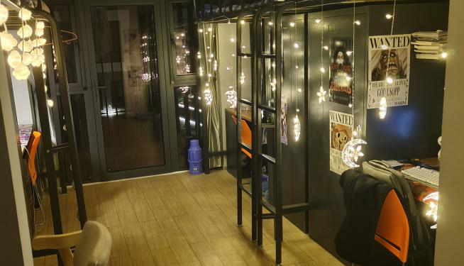 本着不破坏原有设施、不乱涂乱画、不损坏墙面、不使用大功率电器等原则,鼓励学生全力营造温暖、温馨的宿舍环境,发挥奇思妙想,用充满生机的绿植、满溢书香气息的字画等装饰宿舍,评选绿色环保奖、艺术创作奖、卓越创新奖、焕然一新奖和奇思妙想奖,一见钟“寝”,我“形”我塑,让宿舍文化真正的“活”起来。