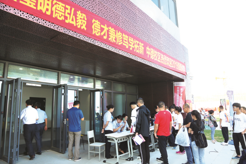 2019年,中德校区的启用是学校又一历史性飞跃的标志事件。作为学校2019年“十大攻坚突破任务”之一,学校党委高度重视,成立了青岛科技大学中德校区管委会、党总支和由学校各相关职能部门、学院组成的援建专班,并于当年的7月20日在中德生态园管委会召开了由学校、生态园管委会、计世传媒联合参加的青岛科技大学中德校区启用推进会。学校、政府、企业紧密联系,各方领导高度重视,合力齐推工程按期保质完成。