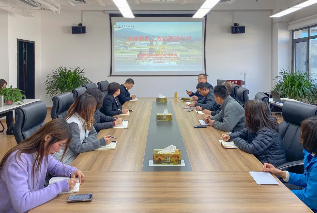 12月8日下午,中德校区开展教职工集体政治理论专题学习,党总支书记王永波主持学习活动,校区全体教职工出席会议。