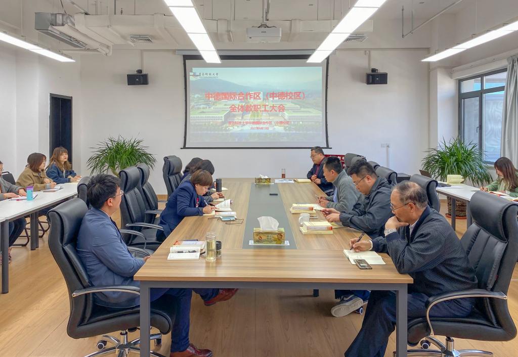 4月13日下午,中德校区召开全体教职工大会,党政办公室主任刘尧主持会议。