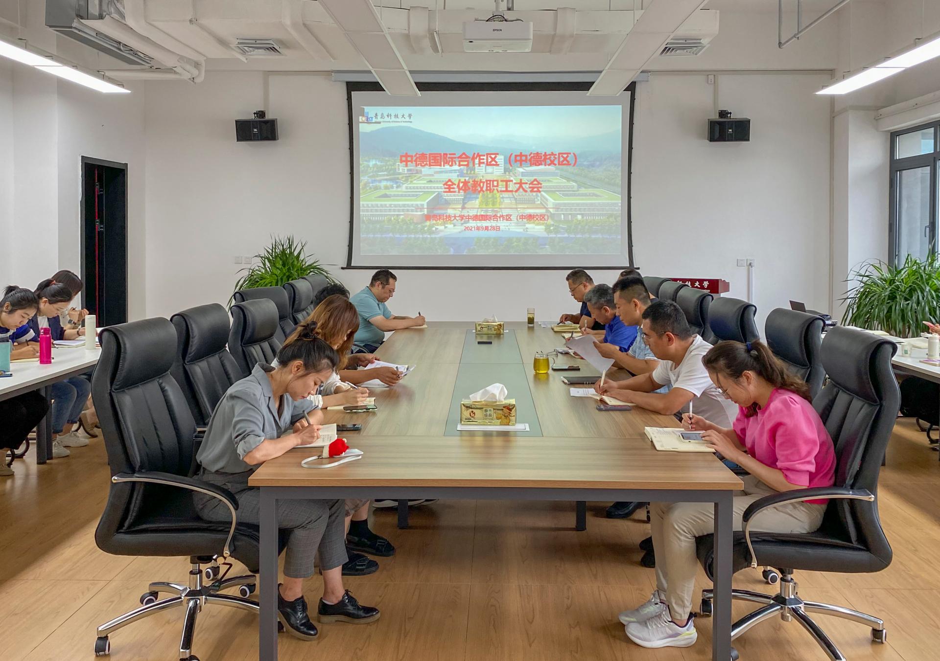 9月28日下午,中德校区召开全体教职工大会,党政办公室主任刘尧主持会议。