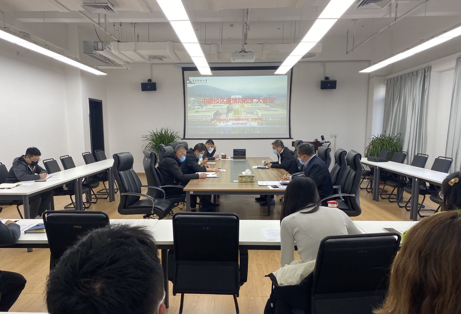 3月20日下午,中德校区召开了疫情防控扩大会议,学习贯彻习近平总书记在3月17日中央政治局常务委员会会议上的重要讲话精神,进一步研究部署校区疫情防控工作。会议由王永波主持。