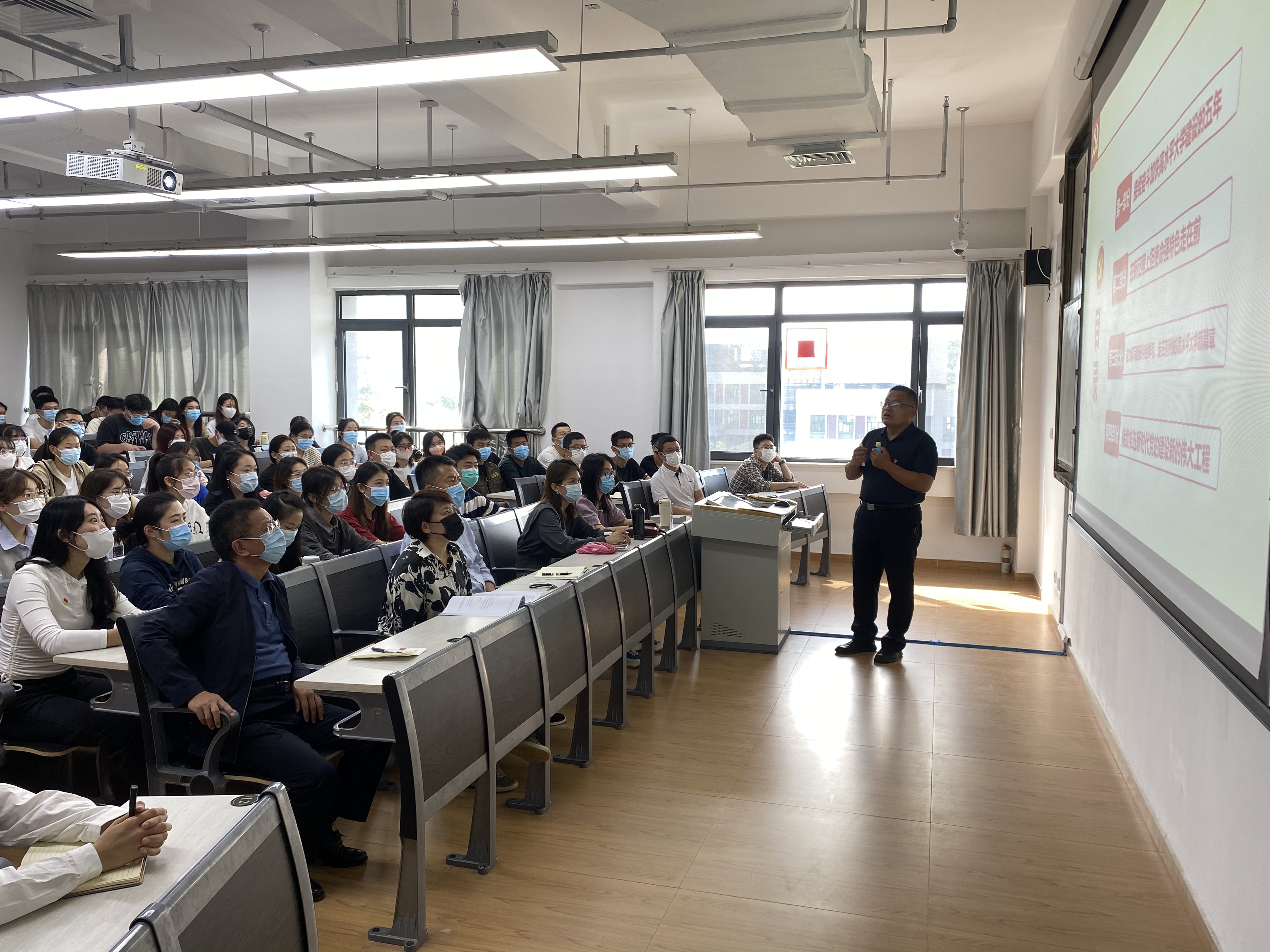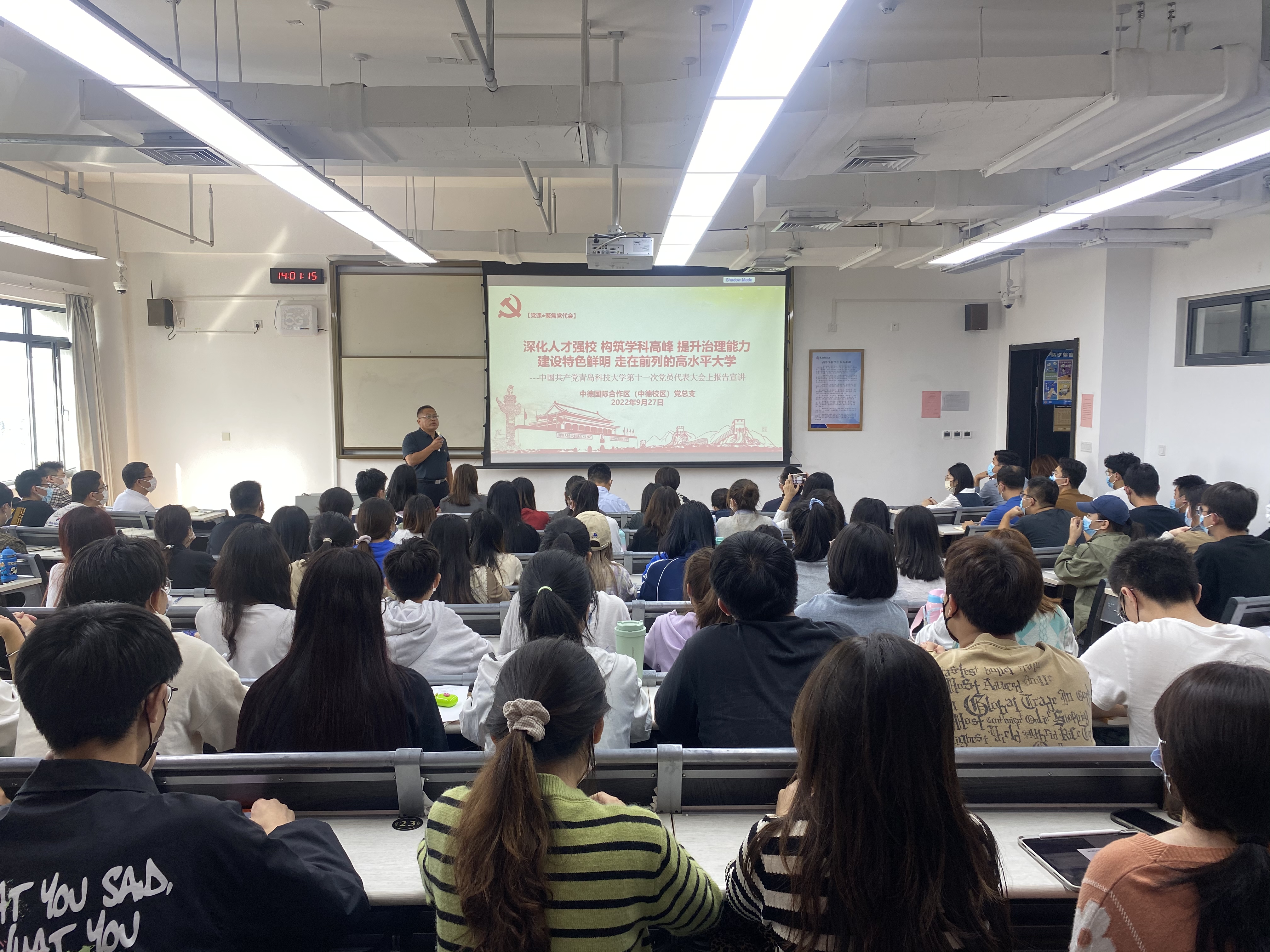 9月27日下午,青岛科技大学中德国际合作区(中德校区)举办了中国共产党青岛科技大学第十一次党员代表大会报告宣讲会,校区全体师生党员、2022年秋季发展对象和部分入党积极分子参加宣讲会,校区党总支书记王永波主讲。