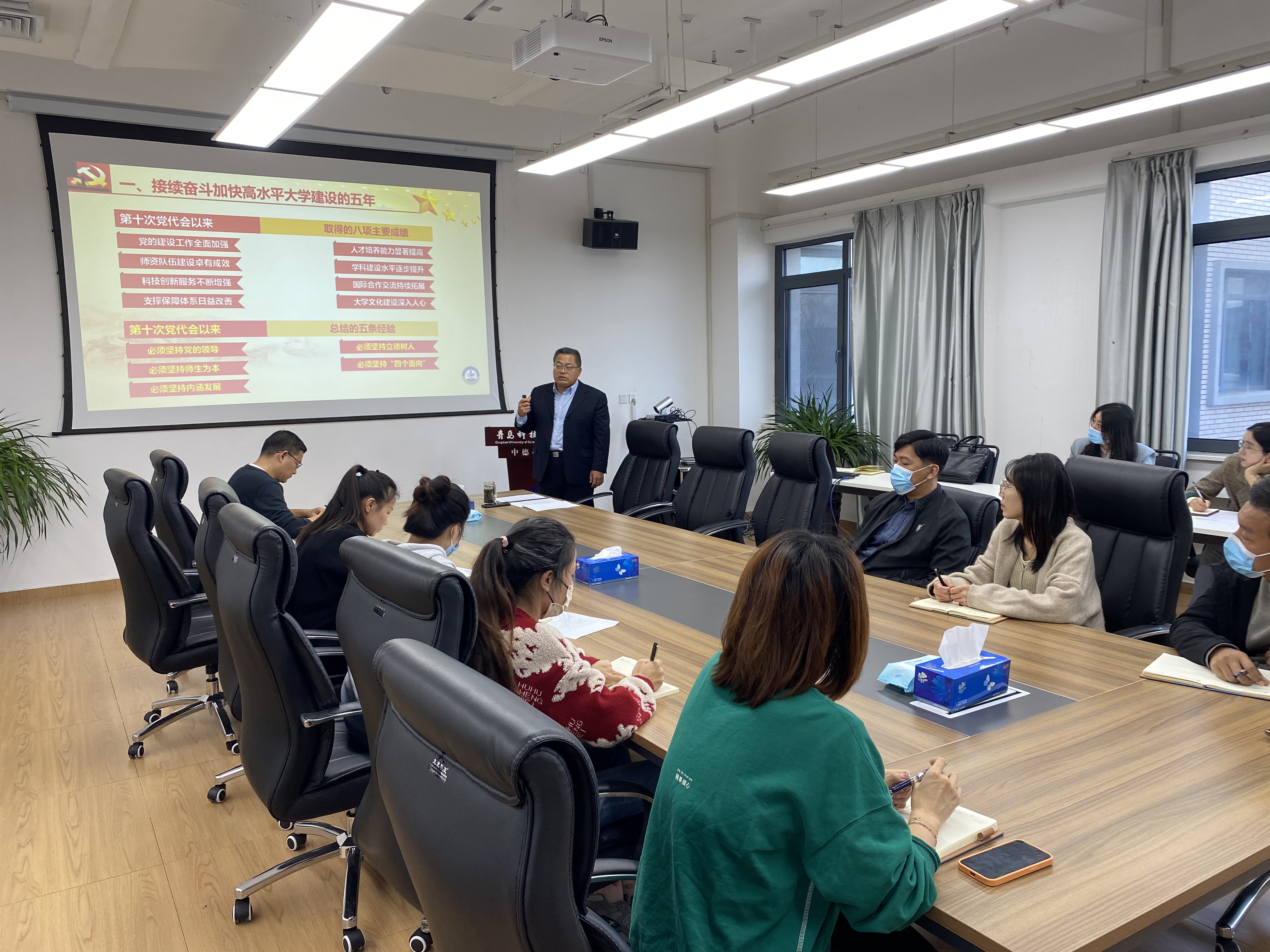 在专题学习会上,王永波从四个方面解读了李兴伟书记作的题为《深化人才强校 构筑学科高峰 提升治理能力 建设特色鲜明 走在前列的高水平大学》的报告。一是接续奋斗加快高水平大学建设的五年。第十次党代会以来是学校接续奋斗加快高水平大学建设的五年,是紧握历史接力棒,咬定目标、脚踏实地的五年,以只争朝夕的精神和攻坚克难的决心取得了八项主要成绩、总结了五条经验。二是在新征程上担使命强特色走在前。今后五年,建设“特色鲜明、走在前列”的高水平大学是学校新时代、新征程的全局性定位、全方位要求和全过程引领,学校发展面临着六个目标、三大战略的新形势、新任务、新要求。三是奋力谱写建设特色鲜明、走在前列的高水平大学新篇章。今后五年,要着力抓好八个方面重点任务,紧紧围绕“特色鲜明、走在前列”的主攻方向,任务艰巨、责任重大,必须统筹兼顾,重点推进。四是持续推进新时代党的建设新的伟大工程。建设特色鲜明、走在前列的高水平大学,关键在党。要围绕六个重要抓手,坚持和加强党的全面领导,落实新时代党的建设总要求,深入推进全面从严治党,提高党的建设质量和水平,为学校改革发展提供坚强政治保证。
