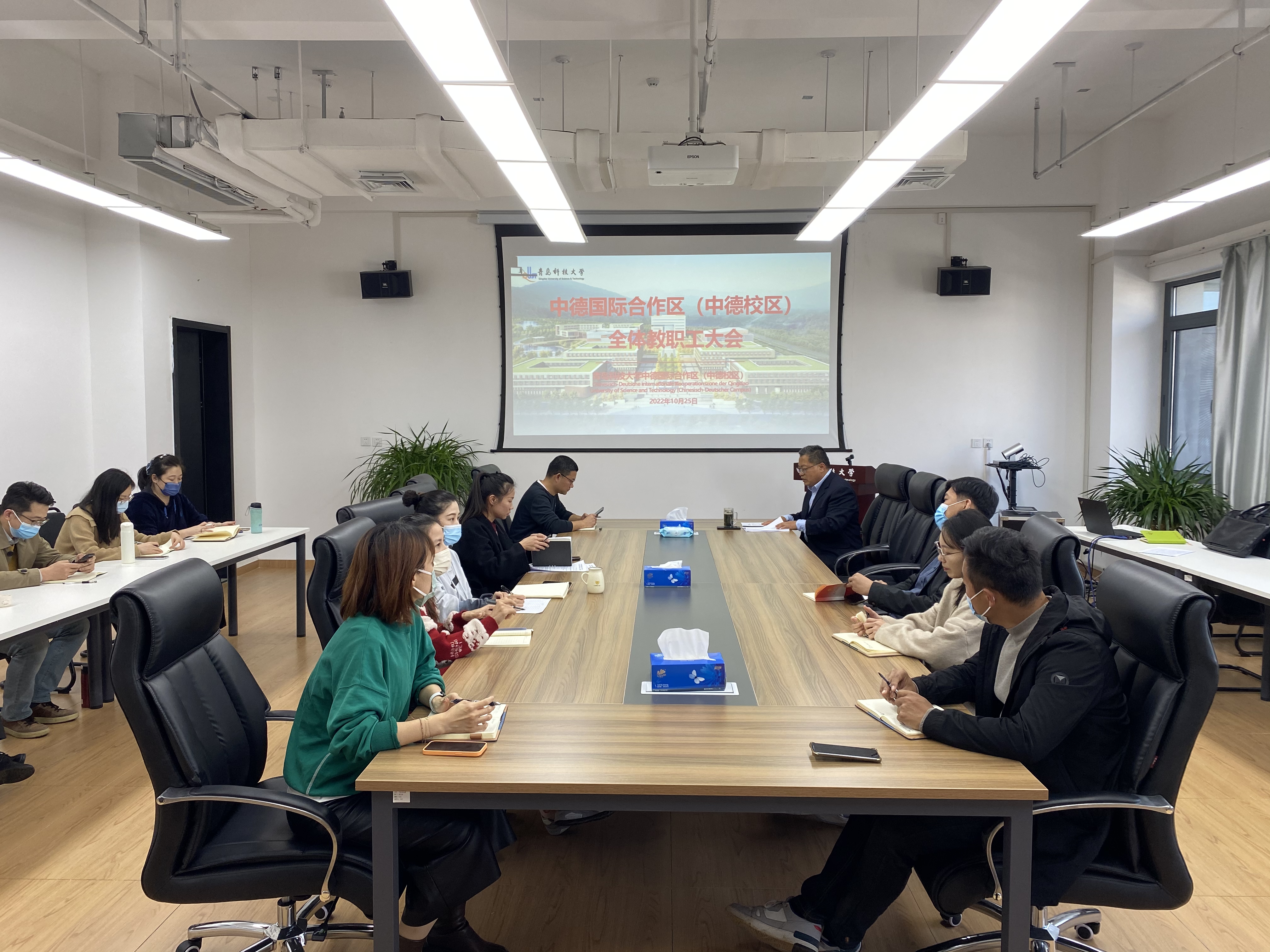 10月25日下午,中德校区召开全体教职工大会,党总支书记王永波主持会议。