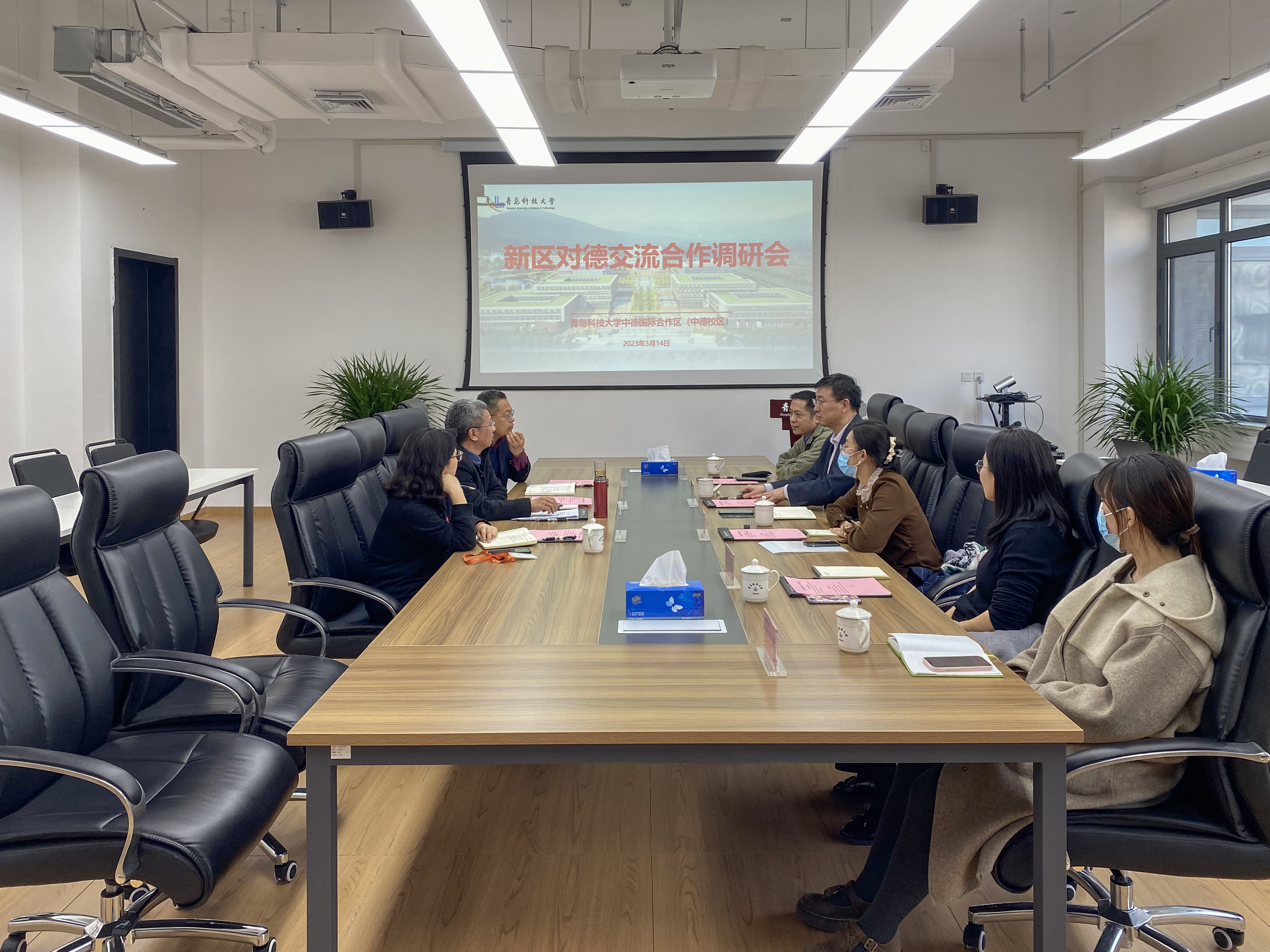 3月14日下午,青岛西海岸新区外事服务中心副主任唐明一行来中德工程学院调研对德交流与合作情况。