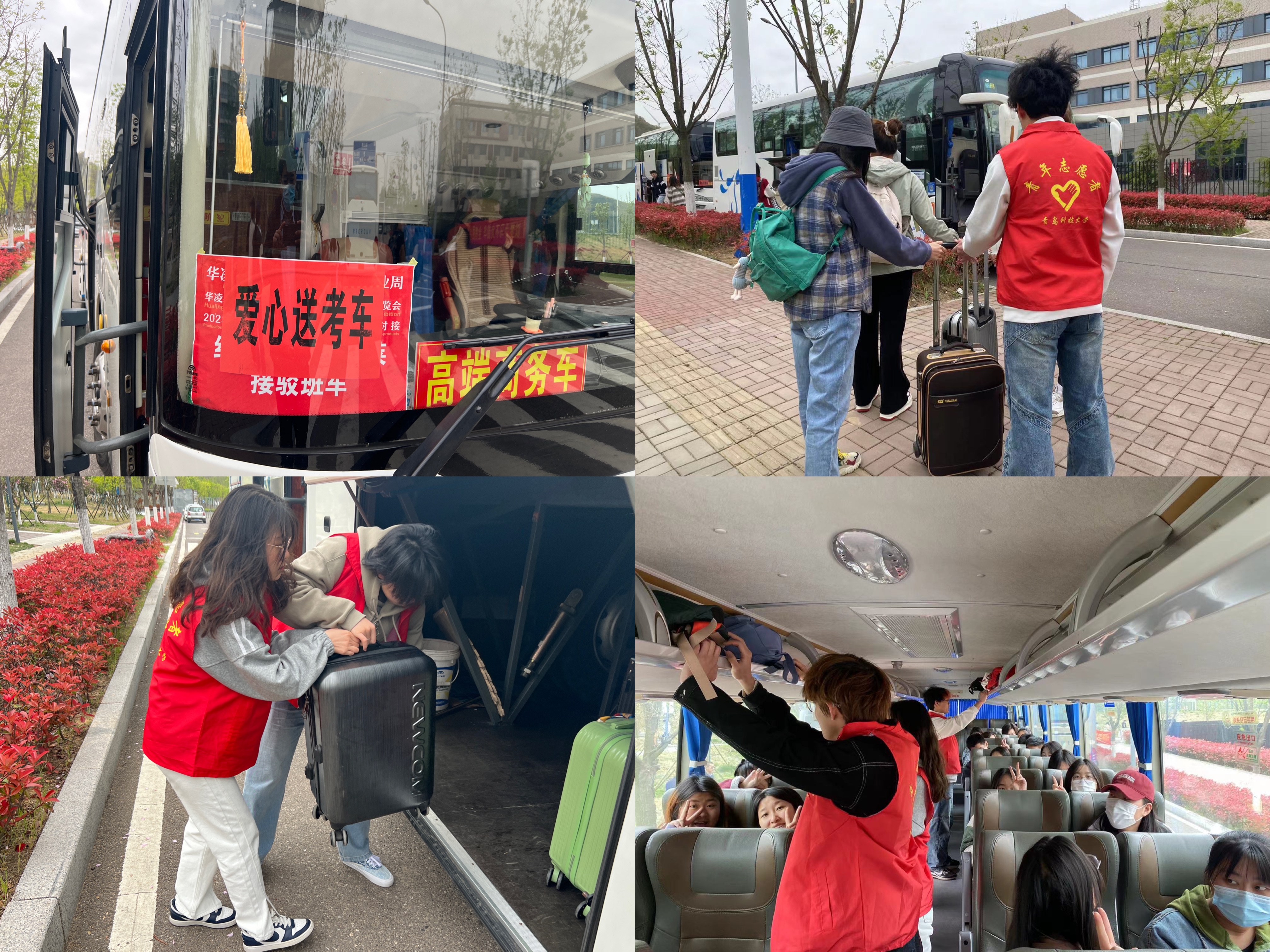 送考现场,中德校区专门定制的5辆爱心送考车依次排列,校区领导、老师和学生会志愿者组成的送考团队为考生搬运行李、检查考具。岳学海亲切地与考生们交谈,叮嘱同学们要调整心态沉着应考,严守纪律诚信考试,并祝愿所有考生在这春暖花开的日子里,榜上有名,成功上岸。