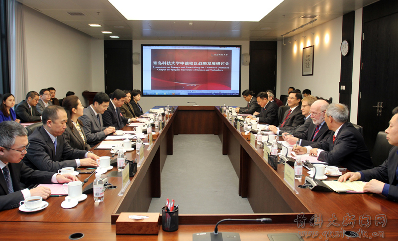 3月28日上午,青岛科技大学中德校区战略发展研讨会在中德生态园召开。教育部国际合作与交流司政策规划处处长刘剑青,国家留学基金委欧洲事务部主任力洪,山东省教育厅国际交流与合作处副处长王霄凌,帕德博恩大学常务校务副总理佩尔茨,帕德博恩大学理事、青岛科技大学中德校区项目协调人克莱纳-布宁教授,青岛科技大学中德校区项目负责人布莱姆泽教授,青岛中德生态园管委副主任张建国,青岛中德生态园管委副巡视员刘雯,青岛科技大学党委副书记、校长马连湘,中国计算机世界出版服务公司董事长万鹏远、常务副总裁张润良、青岛中德双元教育科技有限公司董事长滕小强等出席研讨会,会议由青岛科技大学党委副书记李庆领主持。