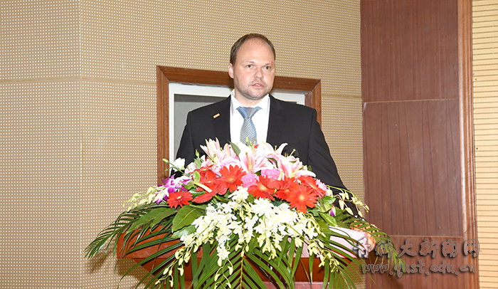 德国帕德博恩大学项目负责人Wolfgang Bremser、巴斯夫股份有限公司亚太涂料应用研究高级经理Stefan Fueldner分别用汉语和英语表达了对学院首届学生的欢迎及在“双元制”培养模式下,学生成长成才的规划。教师代表王芳和新生代表刘一赫分别发言。