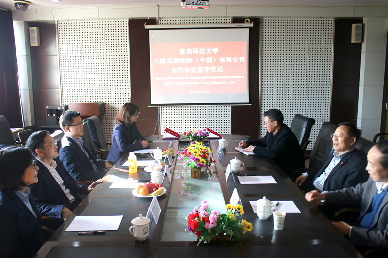 1月27日下午,青岛科技大学与大陆马牌轮胎(中国)有限公司合作协议签字仪式在中德科技学院会议室举行。学校党委副书记李庆领、德国大陆马牌轮胎(中国)有限公司合肥工厂总经理王小骥、财务总监周渊、人力资源部总监孙怡、中德双元工程学院常务副院长岳学海出席签约仪式。
