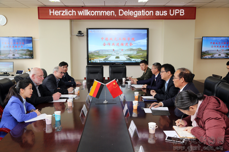 3月21日,德国帕德博恩大学理事、青岛科技大学中德校区德方项目协调人克莱纳-布宁一行四人访问青岛科技大学,就中德校区的建设、合作与国际交流进行商谈。