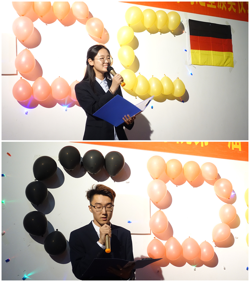 5月31日,学院在弘毅楼C区四楼举行了“当青春遇上德语角”暨第一届十大德语学习之星颁奖仪式。学院直属党支部书记曲斌艳、副院长罗毅、德语中心主任郭爱成、辅导员付继航出席颁奖仪式,德国外教、留学生及学院师生百余人参加了活动。活动由德语中心副主任田春雨主持。