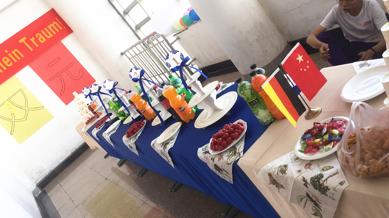 随后德语角活动正式开始,学院为本次活动免费提供的水果、饮料和点心,学生与外教及德国留学生展开了交流,整个德语角充满了欢声笑语,陶醉其中。