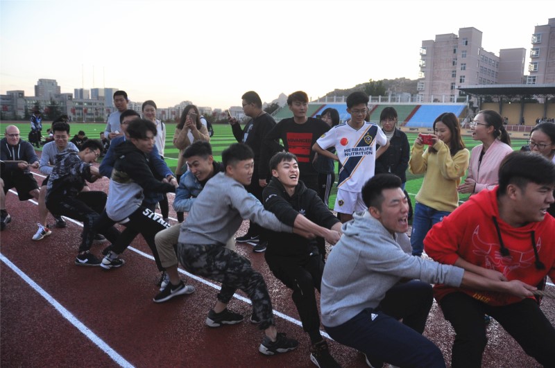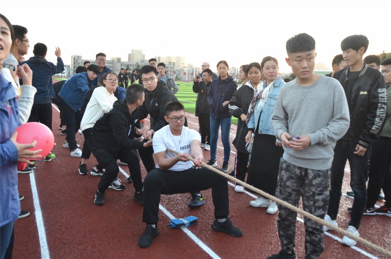 趣味运动会与田径运动会不同,其目的是为了展现同学们青春、热情、富有活力的风采,提高身心素质,增加学院的集体凝聚力,培养团队的合作精神。比赛开始前,主持人将同学老师分为七组,依次进行了“三人四足”“企鹅漫步”“薪火相传”和“探索前进”四个游戏,这十分考验队员的记忆力和彼此的默契程度。最后一个游戏是“齐心协力”——拔河。比赛开始前,大家摩拳擦掌,跃跃欲试,哨响后,大家绷紧肌肉,使出全身的力气,奋力一拔。赛场上的那一声声鼓足干劲的呐喊加油声逐渐拉近了队员们的距离,增强了集体凝聚力,见证了团结的真谛。比赛期间,每队成员都积极参与,努力拼搏,欢声笑语充满了整个赛场。