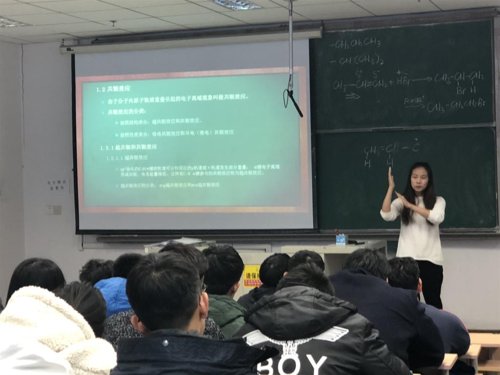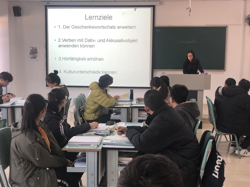 三位教师在课前都做了精心的准备,整堂课教学过程结构清晰,流程顺畅,环节紧凑,教态自然得体,课堂上注重启发引导,善用鼓励性的语言,学生积极主动参与课堂学习,师生互动良好,学生学有所获。其中,李笋老师所执教的《有机化学》一课,凸显如何有效的将化学教学的基础性概念讲活讲透。刘丰毓老师所执教的《德语1》和田春雨老师执教的《德语3》突破了语言学习的传统,融合课程思政,以小组合作为单位,调动学生的积极性和参与性,在执教老师的带领下,学生讨论热烈,课堂气氛颇为活跃。