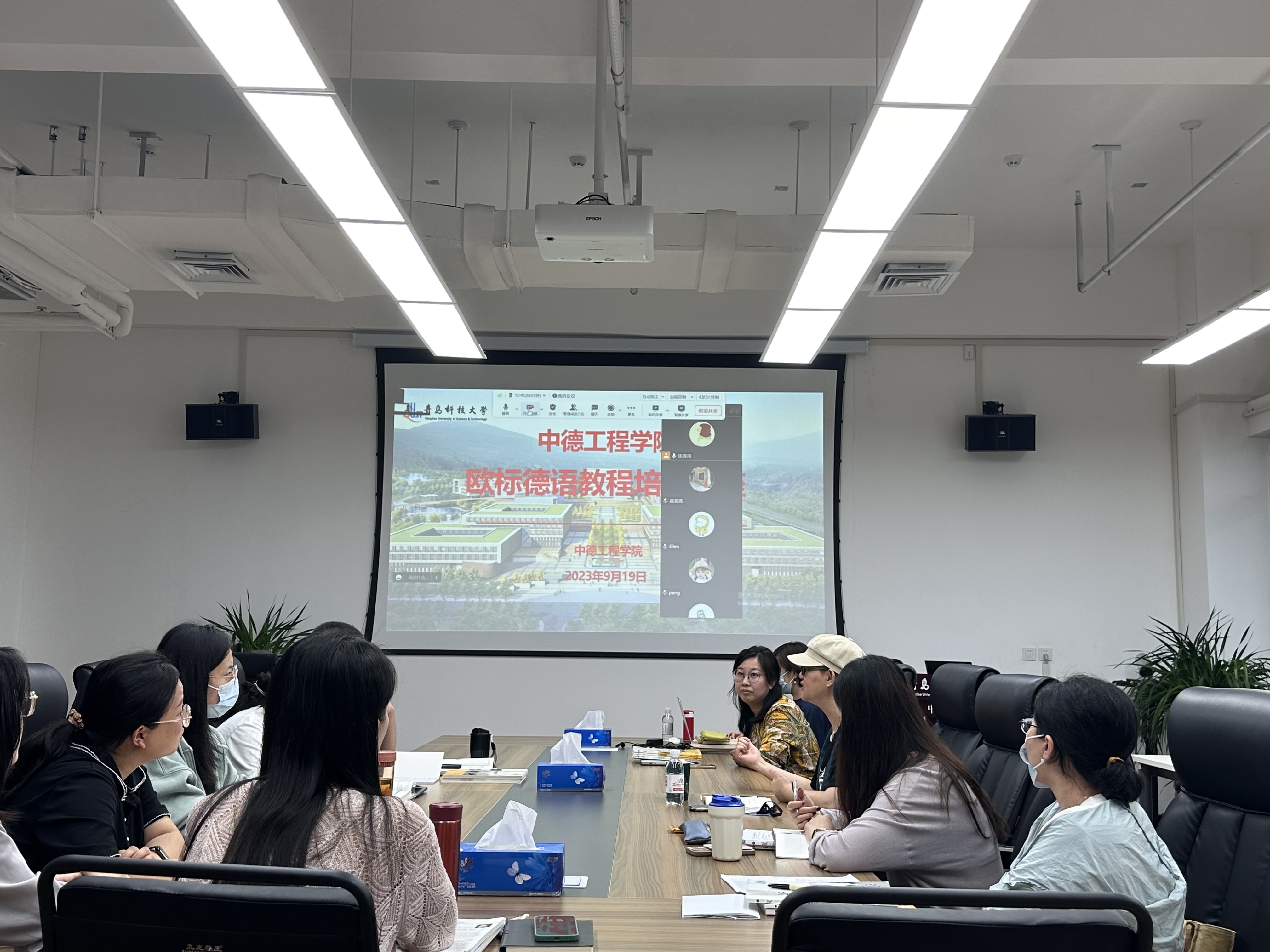 9月19日下午,中德工程学院举办欧标德语教程(DaFleicht)培训讲座,讲座由副院长田春雨主持,由来自上海译文出版社负责欧标德语教程系列教材的编辑庄雯、解扬主讲。中德工程学院全体德语教师和中德科技学院德语教师通过线下和线上方式同步参加了本次讲座。