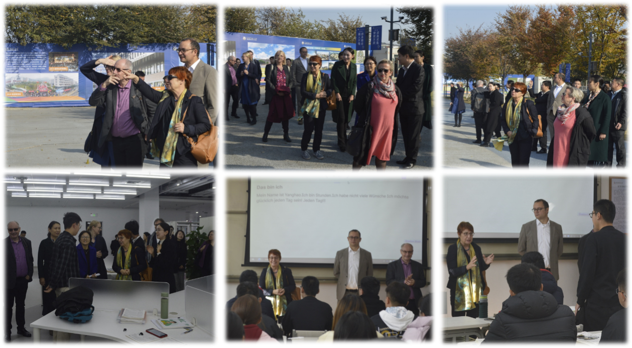 里格拉芙教授一行观看了学校弘毅国际客厅—中德国际合作区(中德校区)主题文化墙建设,听取了学校中德合作办学的人才培养、合作交流及特色发展等介绍。之后,里格拉芙教授来到校区图书馆、德语课堂与教师、学生进行了面对面交流,讲解了帕德博恩大学的教育教学、学习生活特点以及中德合作办学的人才培养特色,加深了广大师生对中德多元文化的了解。
