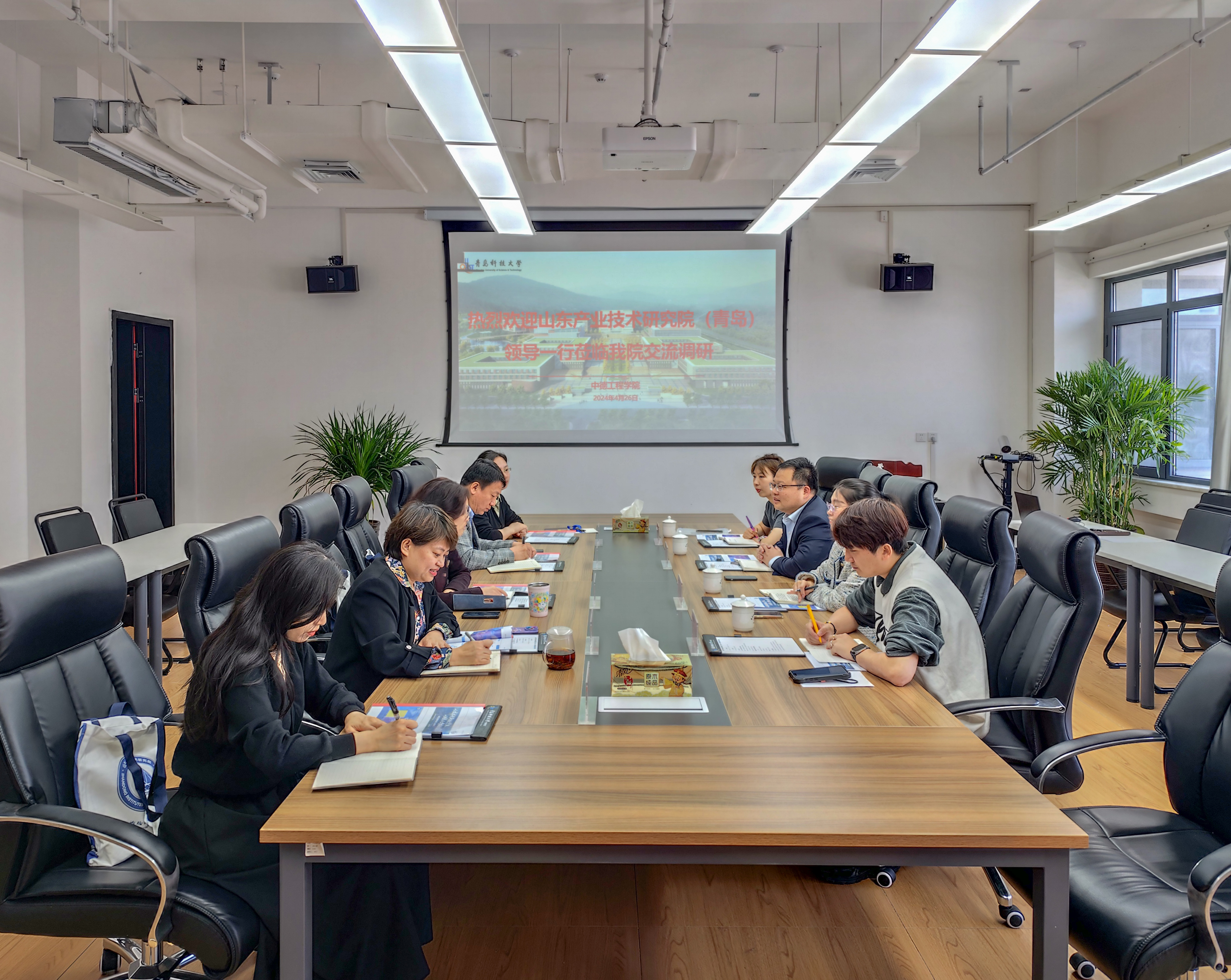 4月26日上午,山东产业技术研究院(青岛)院长助理兼创新合作部部长潘虹舟一行4人来中德国际合作区(中德校区)交流调研。学院院长王芳陪同调研并出席座谈。
