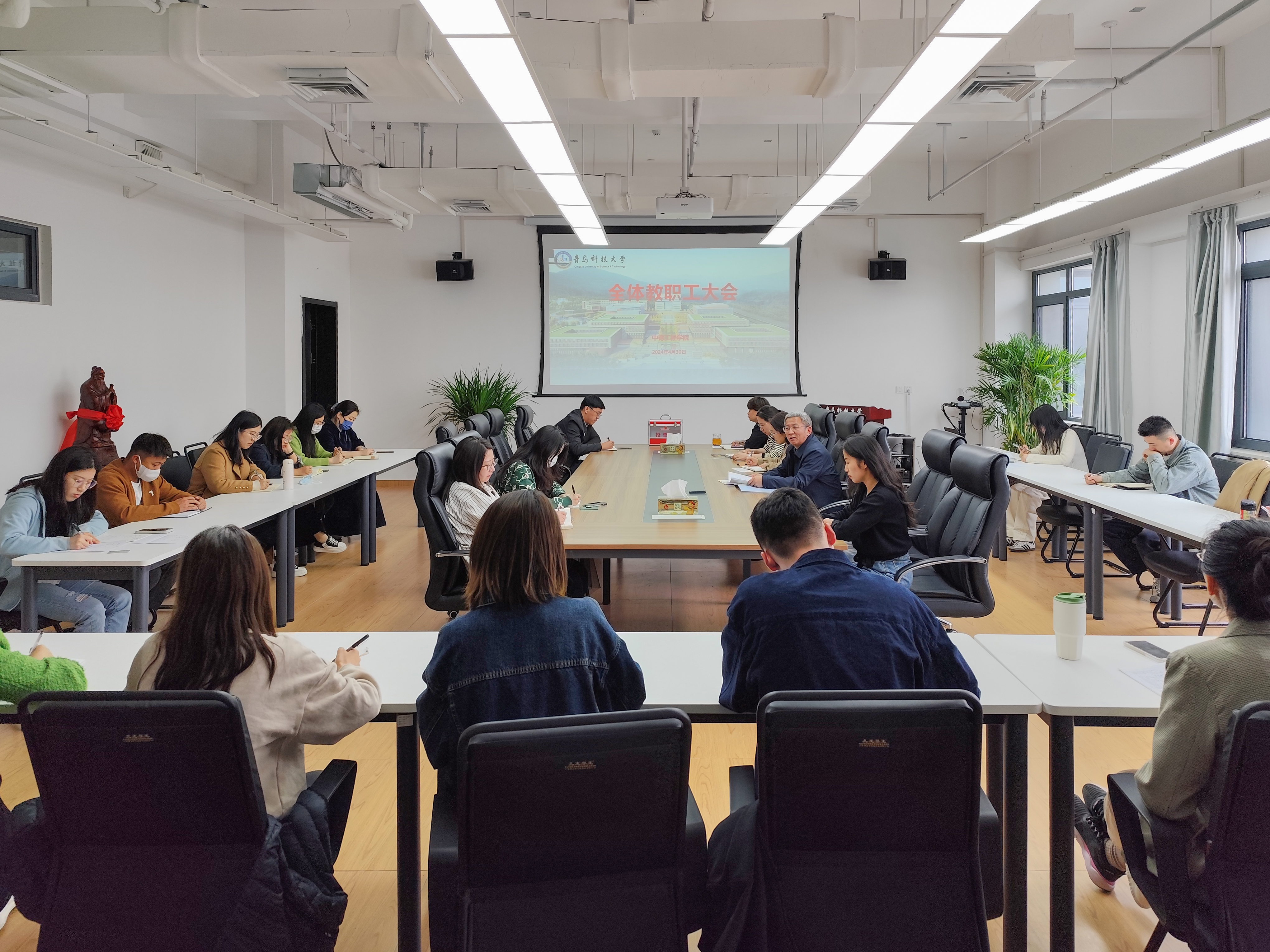 会上,学院党委书记岳学海传达了学校第八届教代会第二次会议筹备会议精神,学习了习近平总书记致信全国优秀教师代表的重要文章《弘扬教育家精神 锻造一流教师队伍》,强调了习近平总书记的重要论述深刻阐释了中国特有的教育家精神,赋予新时代人民教师崇高使命,为我们打造高素质教师队伍、推进教育高质量发展、建设教育强国指明了方向、提供了遵循,具有十分重要的理论价值和实践意义。岳学海指出,学院教师应做好新形势下师德师风建设,引导广大教师以德立身、以德立学、以德施教,以德育德,进一步提升教师思想政治素质,师德素养和专业能力,并部署了学院近期两方面重点工作:一是“压紧压实”各岗位安全责任,切实维护校园安全稳定及教育教学秩序,精准掌握离校师生和留校师生情况,做好值班值守,保障师生的人身安全;二是要求学院教师严抓课堂纪律,提高课堂质量,严守千教万教还要因材施教方式方法,全力坚守好高校教师的岗位,履行好教书育人的职责,推动中德工程学院教育教学、人才培养和科学研究迈上新台阶。