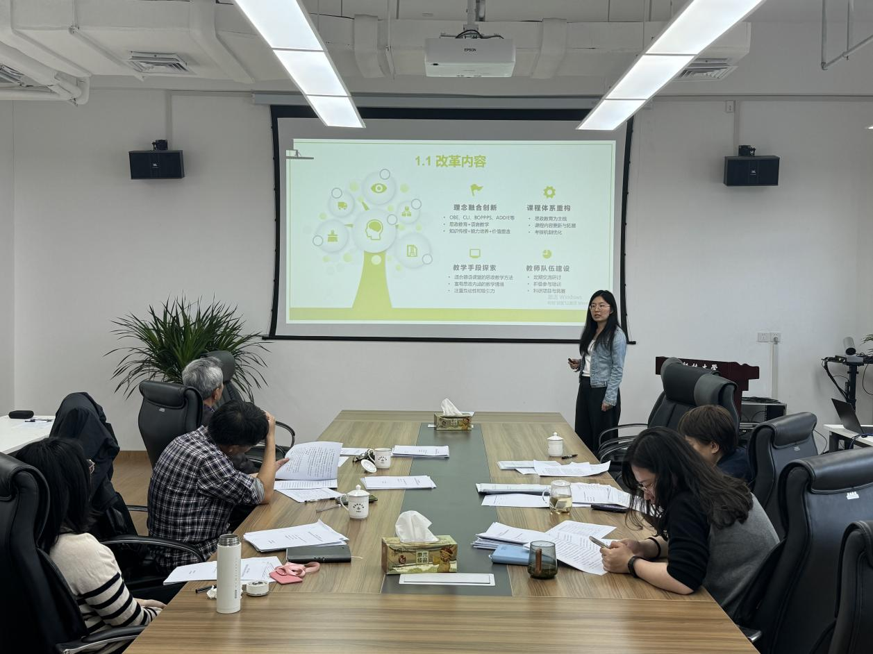 验收会上,9门课程负责人就课程组开展的具体研究工作、研究过程及项目组取得的研究成果做了汇报,专家组一一进行了点评。通过汇报,9门课程均做到了深入挖掘课程中的思政元素,将思政内容与专业知识紧密融合,线上线下多渠道落实课程思政,同时注重创新教学方法和手段,通过案例教学、小组合作、实践活动、融入总评、学生自主采集思政素材等多种形式,增强了思政教学的吸引力和感染力。通过本次课程思政教改立项平台,各项目组深入挖掘课程思政元素,将思政元素全面融入课程教学大纲和每个章节,提升课程育人能力的同时,取得了丰富的项目成果。在思政素材库方面,建立了6个线上多媒体思政素材库,编印了3部《课程思政教学手册》;在教学论文方面,各项目组在多个期刊发表思政主题类论文17篇;在相关教学科研项目方面,各项目组共获批相关立项3项;在教师教学成长方面,9个项目组共有13名教师参加学校2023年度青年教师教学竞赛,青年教师教学竞赛中融入思政元素取得佳绩,获奖比例100%,其中3个项目负责人获得一等奖;在学科竞赛方面,培养指导3名学生在国家级、省级学科竞赛中获奖,课程思政育人成效显著。各项目负责人准备认真,报告各具特色和亮点,赢得了专家组的好评。