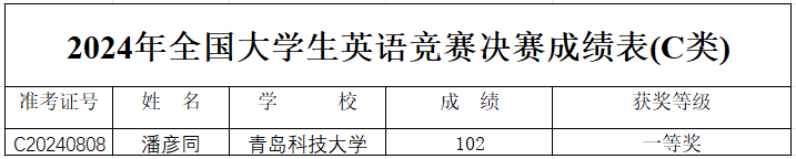 2024年5月19日,全国大学生英语竞赛山东赛区决赛在山东师范大学举行。根据近日公布的竞赛成绩,中德工程学院2022级学生潘彦同喜获省级一等奖,学院已连续两年在此竞赛中获省级一等奖。