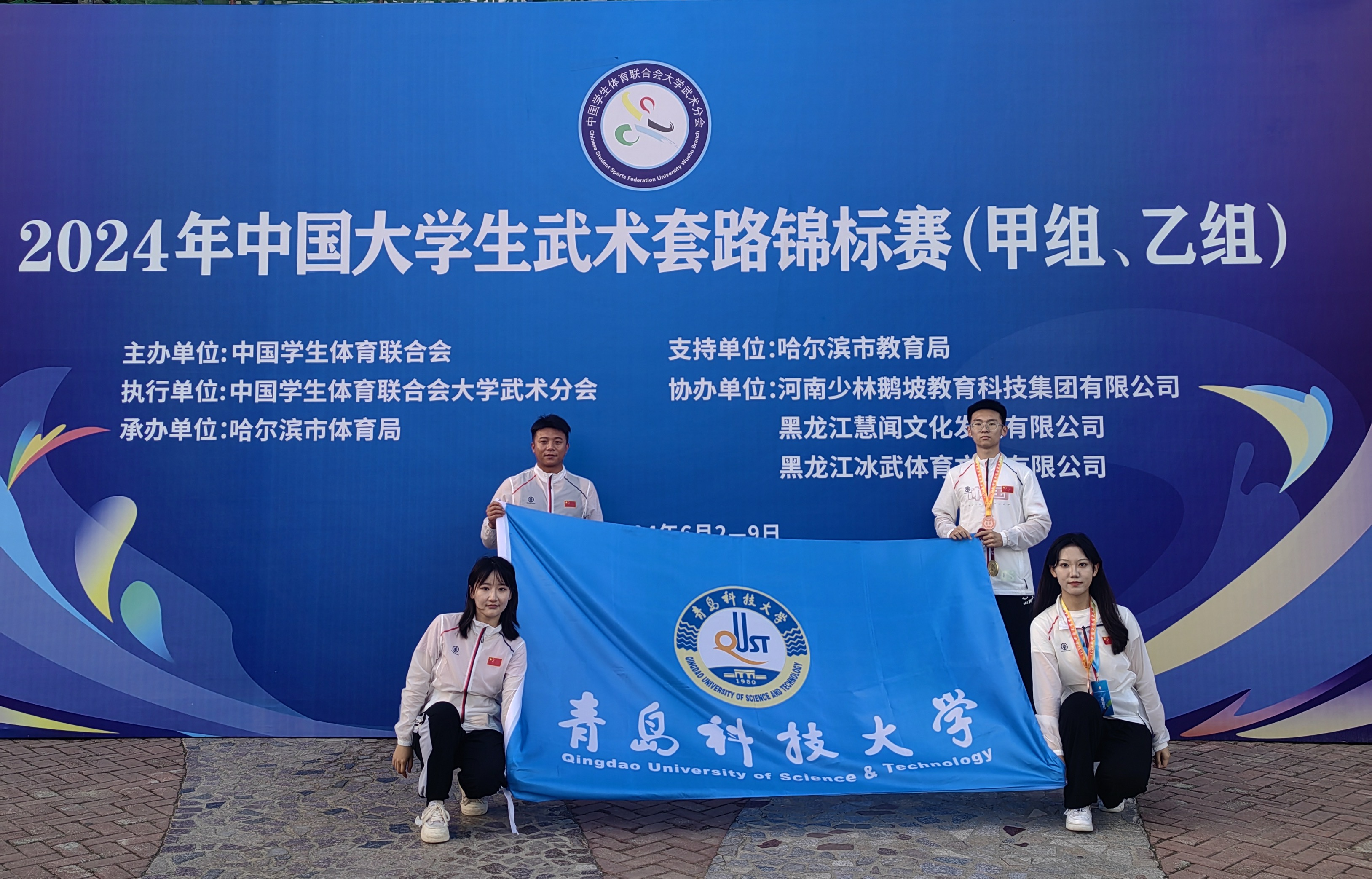 6月2-9日,2024年中国大学生武术套路锦标赛在哈尔滨市举行。本届竞赛是历年来大学生武术套路锦标赛参赛规模最大的一次赛事,共吸引了中山大学、浙江大学、哈尔滨工业大学等全国256所高校,共1600余名大学生参赛,每个组别个人项目只录取全国前8名,代表了国内大学生最高武术套路竞技水平,赛事规格高,参赛范围广,竞争较往年更为激烈。我校中德工程学院体育教师田浩带领邵明亮、冯舒涵、贾佩琪3名同学代表学校参赛,经过激烈角逐,共在4个比赛项目中为学校赢得两枚铜牌、1项第六、1项第八的优异成绩,获奖成绩较去年取得更大突破。