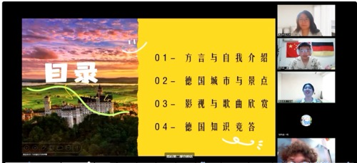 趣味性:图片、视频、游戏和竞赛的有机结合使活动过程充满乐趣,吸引学生认真听讲、积极参与。“德趣之旅”中,教师鼓励学生用家乡方言自我介绍,通过乡音拉近了学生之间的距离,通过介绍了解彼此的城市。教师以此为契机介绍了德国的方言及德国主要城市和景点,加强了学生对德国的了解。