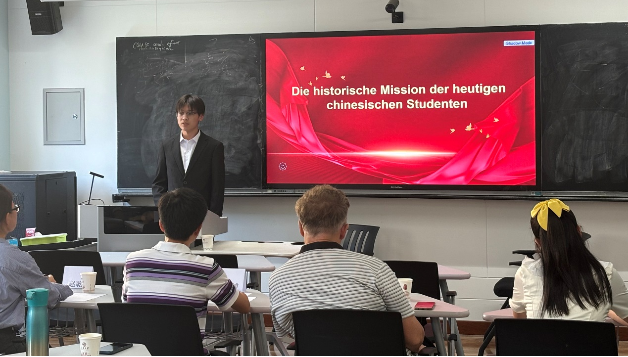 学院积极组织学生参赛,以赛代练,提升学生德语应用能力。为选拔优秀参赛选手,九月初开始,紧锣密鼓地组织了报名组织和线上初赛,各年级同学参与积极,在院内选拔赛中,同学们以“Die historische Mission der heutigen chinesischen Studenten”为题进行了精彩展示。经学院评审,最终翟晓桐、王晨硕两名同学获得决赛参赛资格。