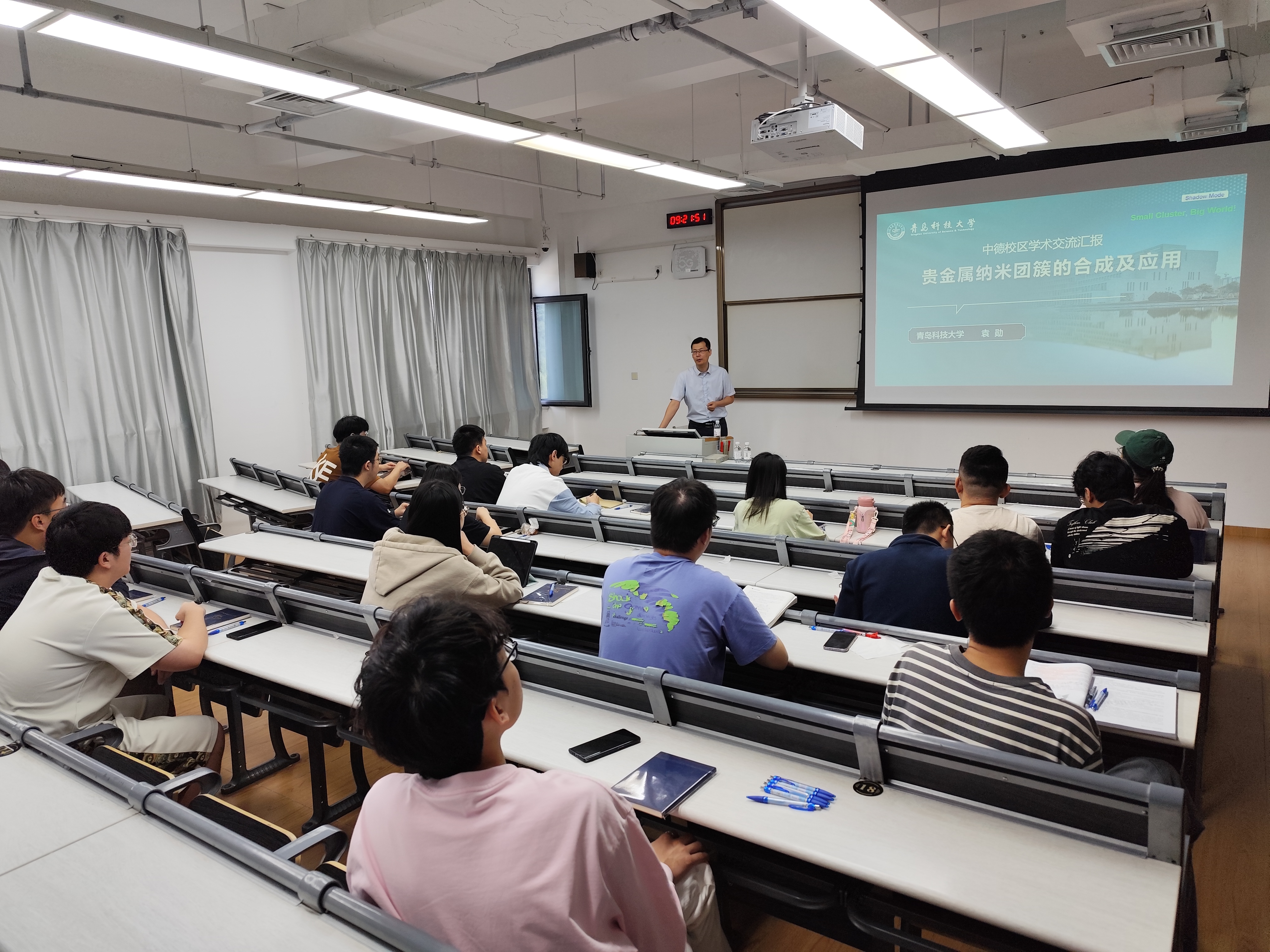 在随后与学生的交流互动环节中,袁勋教授对青岛科技大学金属纳米团簇创新团队当前的科研进展及未来发展规划进行了讲解。他的分享极大地激发了学生们对这一科学领域的浓厚兴趣,并点燃了他们继续深造、考研的热情。同时,袁勋教授还鼓励在座的学生们能够积极投身于这一前沿科研领域,贡献自己的力量。