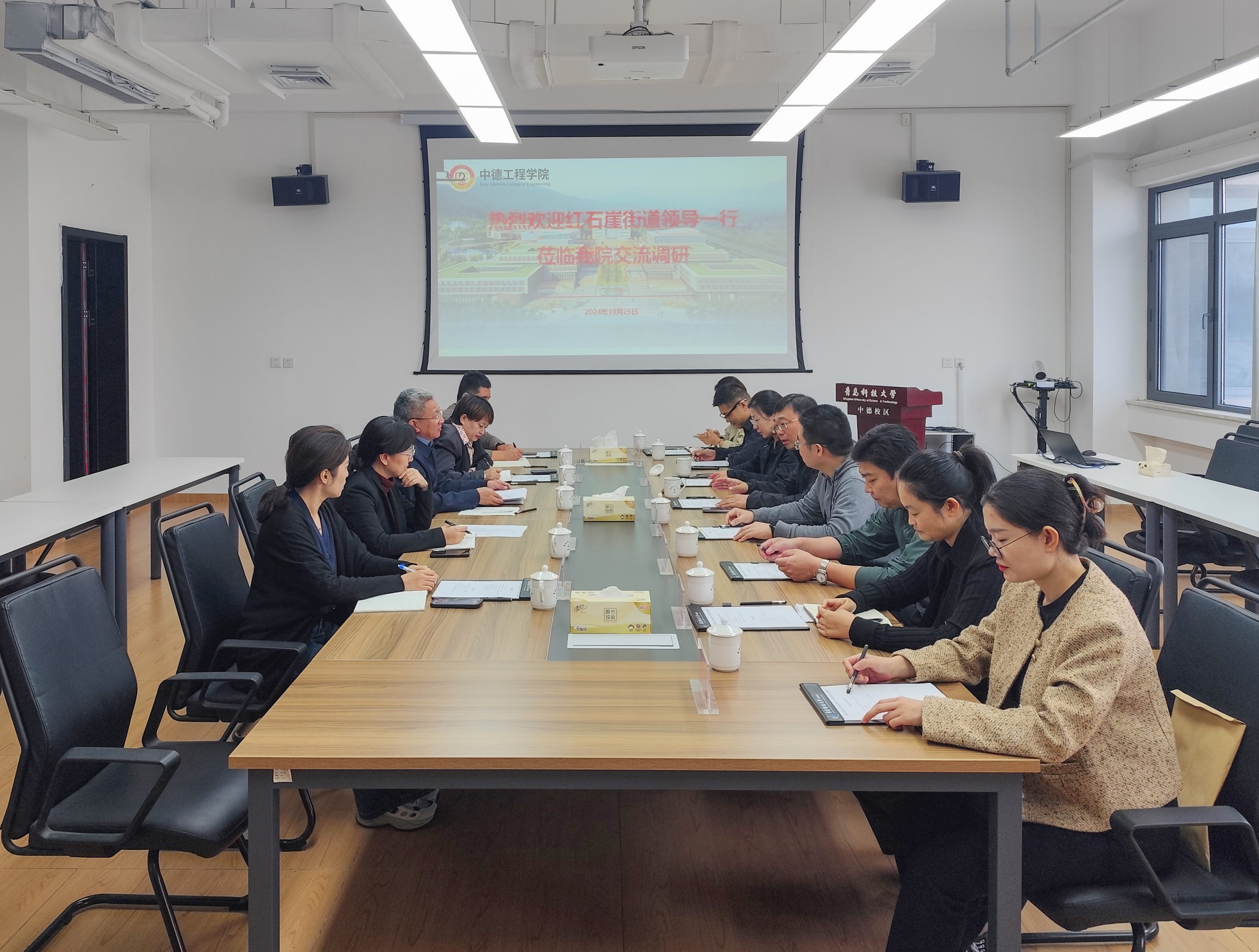 10月25日,红石崖街道党工委书记刘超,党工委副书记、办事处主任刘琨一行8人来中德工程学院交流座谈,学院党委书记岳学海、院长王芳出席座谈会。
