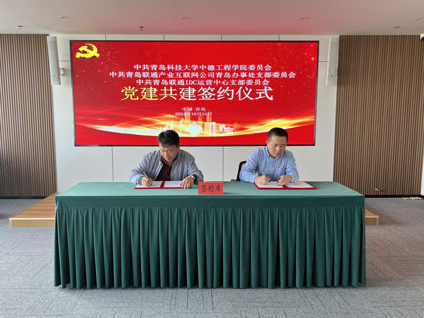 为深入学习贯彻党的二十大和二十届三中全会精神,充分发挥基层党组织战斗堡垒作用和党员的先锋模范作用,落实新时代党的建设总要求,进一步探索创新党建工作,搭建基层党组织共享交流平台,10月24日,中德工程学院与青岛联通青岛分公司举行党建共建签约活动。学院党委副书记兼副院长曲绍瑜,青岛联通产互办总经理胡军,青岛联通IDC运营中心总经理葛丛林等相关领导,学院党员代表、学生代表参加活动。