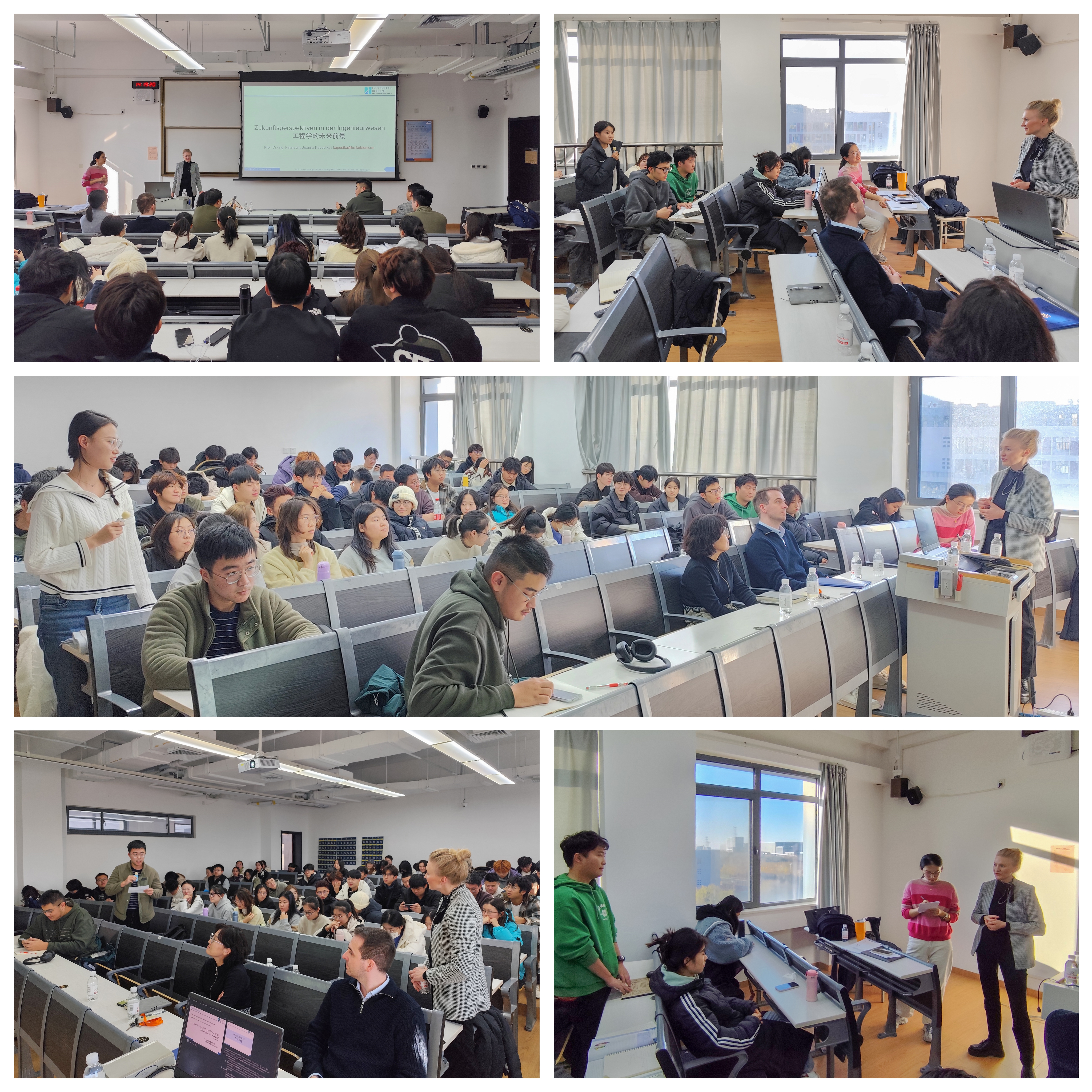 在随后与学生的交流互动环节中,Katarzyna Kapustka教授以耐心的态度解答了学生们的提问,并分享了德国科布伦茨应用科技大学在工程学领域的教学心得与科研成就,从而激发了学生们对专业知识的探索热情以及对未来职业道路的向往。她激励学生们勇于创新,敢于实践,并强调中德学术交流将为学生们开启更宽广的视野和更多样化的发展机遇。