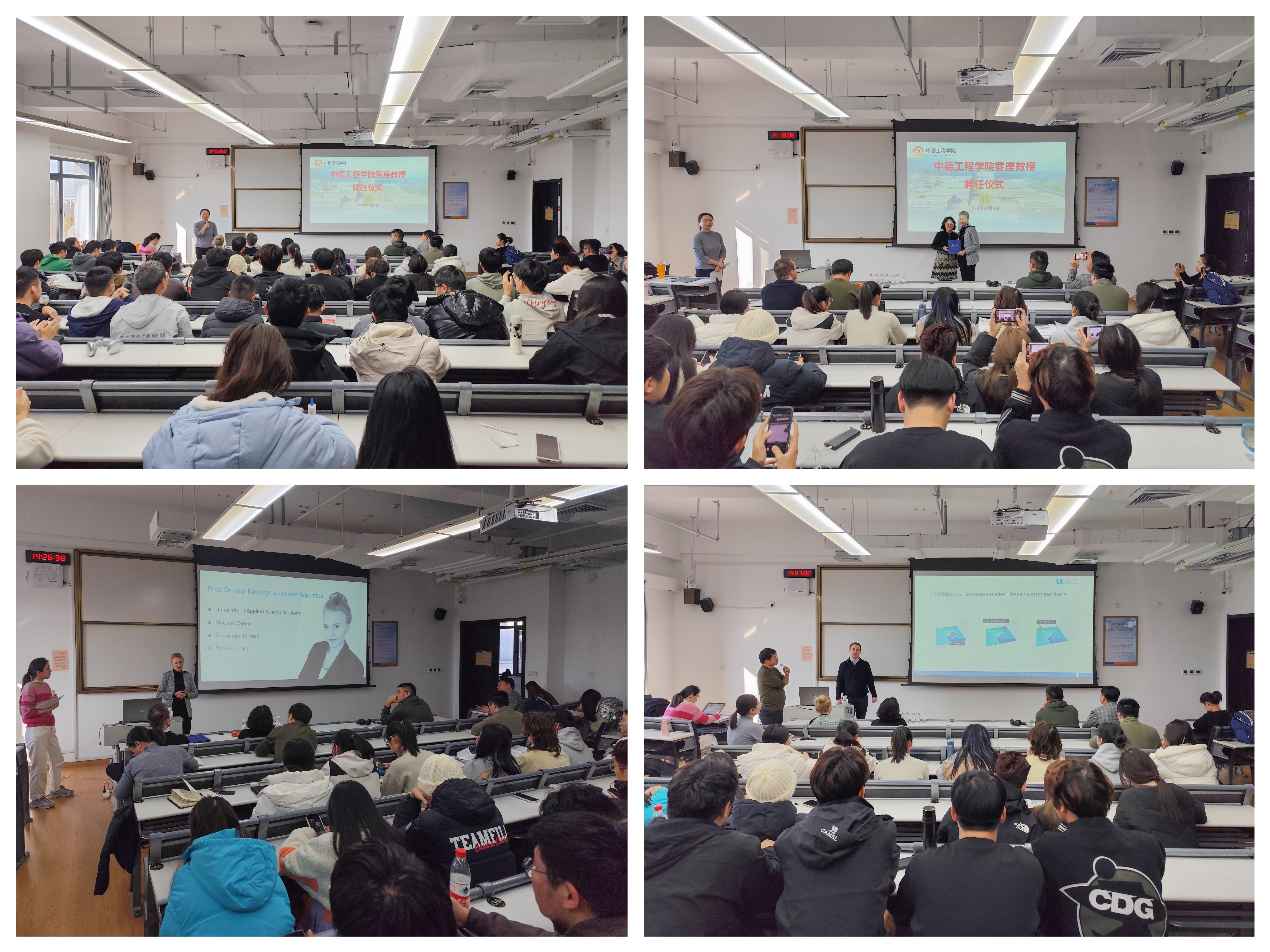 聘任仪式结束后,Katarzyna Kapustka 教授以《工程学的未来前景》为主题,为学院复合材料与工程、化学工程与工艺专业的学生进行了深入的学术交流汇报。在报告中,Katarzyna Kapustka教授详尽阐述了工程学对社会发展的深远意义,以及其技术进步与发展趋势。她从数字化、可持续发展、全球化、人口变化等四个维度,深刻剖析并积极肯定了工程学作为实现未来可持续发展和创新进步的关键力量。在结束时,她引用了爱德华·泰勒(Edward Teller)的名言:“今天的科学即是明天的技术”,寄语在座学子,期望他们将来能够熟练运用自身专业技能,掌握先进技术,为推动行业未来发展贡献力量。