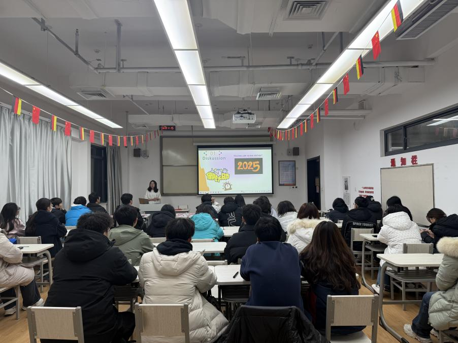 祥龙贺瑞辞旧岁,新岁启封迎瑞祥。在2024 年步入尾声之际,为丰富学生的文化体验,拓展其多元文化视野,中德工程学院德语教学中心于近日精心筹备并圆满举办了一场别开生面的以“拥抱新年韵律,共鉴中德文化交融”为主题的德语角活动。此次活动以传递新年喜悦、感受中德文化交融为宗旨,为师生们提供了一个充满创意与互动的文化交流平台。