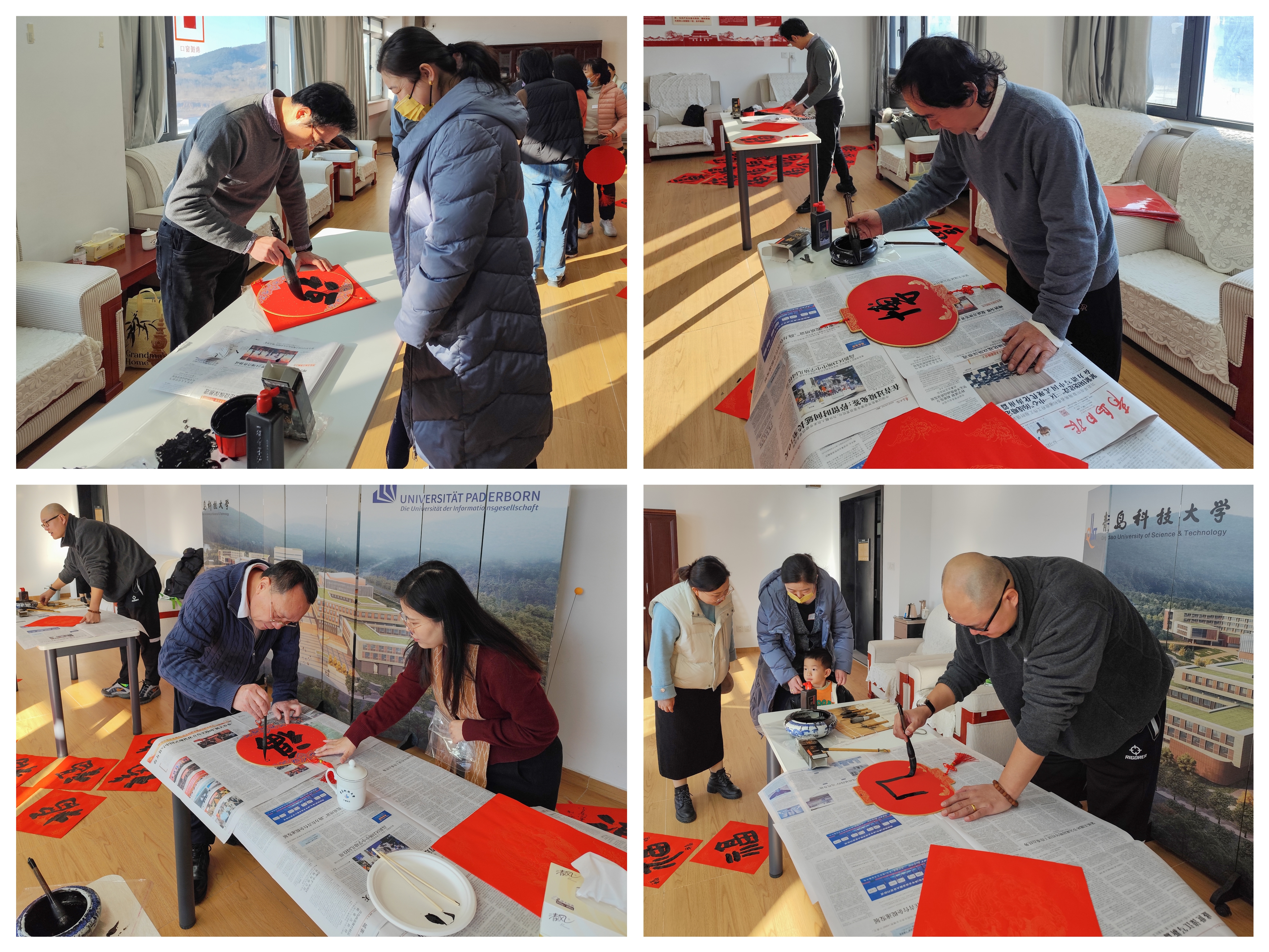 笔走龙蛇资雅韵,诗题福寿贺新春。1月9日,在乙巳蛇年新春佳节来临之际,青岛科技大学书法协会会长杨利一行4人来到中德国际合作区(中德校区)开展2025“迎新春 送福字 进万家”活动,为校区教师送上新春的祝福。