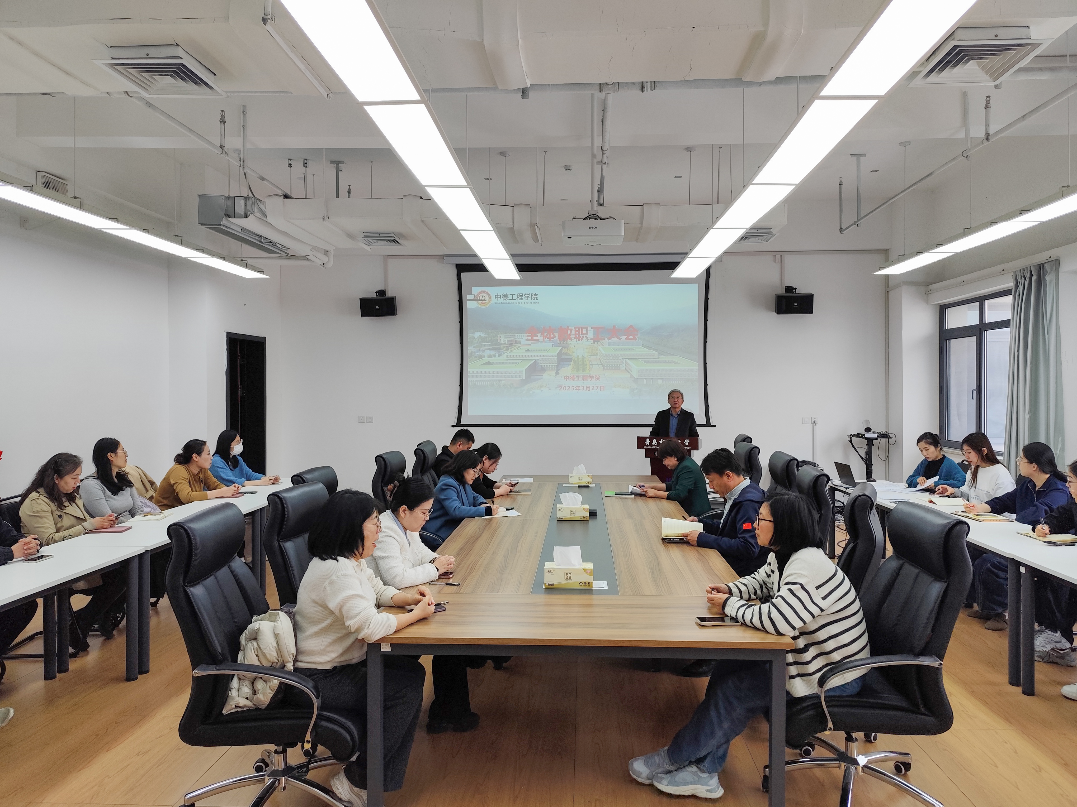 3月27日,中德工程学院在J402会议室召开全体教职工大会。会议由学院党委书记岳学海主持,全体教职工参加会议。