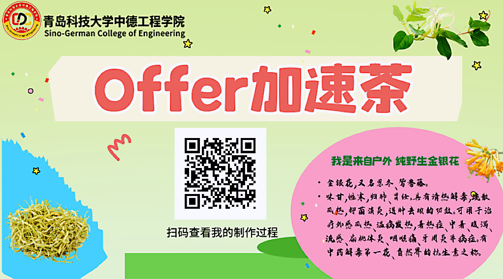 匠心制茶:从自然馈赠到心灵礼物。返校后,团队成员分工协作:金银花与桑葚经盐水清洗、恒温烘干,既保留活性成分又凝住山野清香。为给求职学子注入积极心理暗示,特将成品命名为“offer加速茶”——金银花象征清醒思维,桑葚寓意硕果累累,暗含“智慧破局,收获未来”的美好期许。全程进行纪实Vlog,招聘会现场,大家可扫描二维码观看视频。