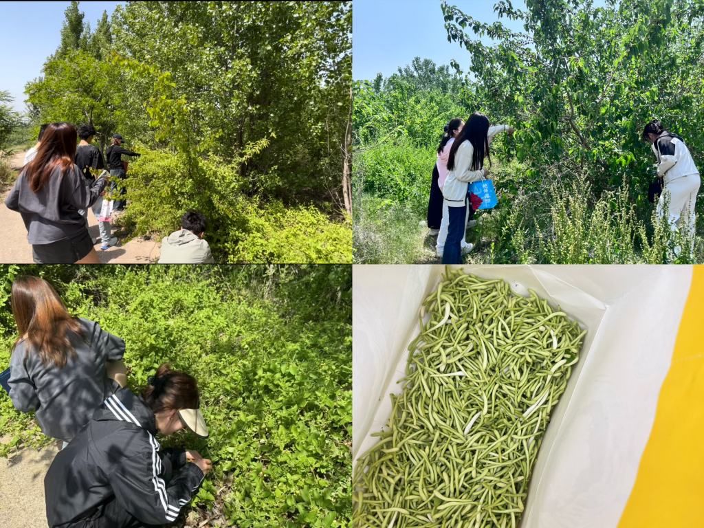 山野寻芳:一堂行走的自然心理课。心理小分队成员深入采摘园,孙安琪老师现场讲解金银花“清热安神”、桑葚“滋阴补血”的药用价值,指导同学们通过“五感观察法”——观其形、嗅其香、触其叶、听风吟、品回甘,在采摘过程中实现身心放松。“指尖触碰到带着露珠的花苞时,焦虑感真的在消散”2024级徐同学分享道。活动严格遵循可持续采摘原则,每株植物均保留果实,践行生态保护理念。