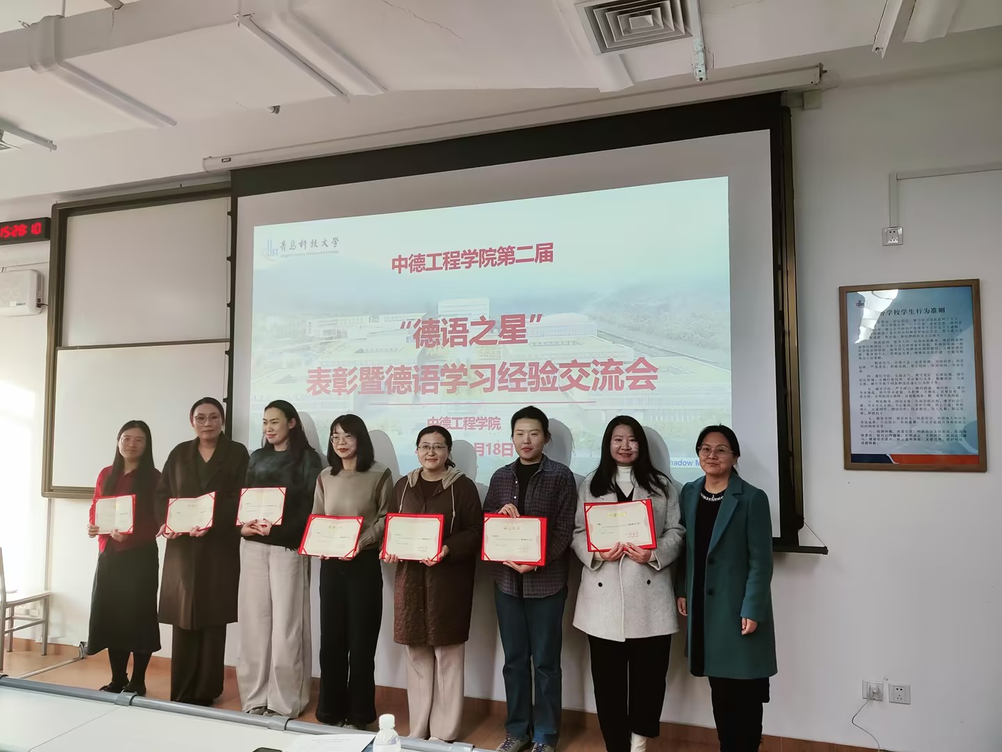 本次表彰大会充分凸显了德语课程在中德合作办学人才培养中的重要地位,不仅对优秀师生进行了表彰,更搭建了德语学习经验总结和分享平台;既集中展现了学院德语教学的阶段性成果,又进一步浓厚了学院的德语学习氛围,进一步激发了师生教与学的积极性。未来,学院将进一步落实中德合作办学人才培养目标,对德语教学质量提升进一步开展专项奖励和表彰,示范带动全体学生在德语学习中积极努力,追求卓越。