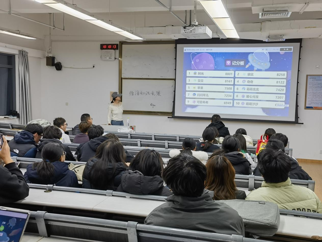 与传统的笔试不同,本次竞赛借助“剥豆豆”平台的在线游戏模式进行,极大地提升了竞赛的趣味性和参与度。同学们在轻松愉快的游戏氛围中完成了知识比拼,纷纷表示这种形式让学习变得不再枯燥,极大地增强了自己继续深入学习德语的兴趣和信心。在本次竞赛中,化工CDC244班司源同学杀出重围,斩获了一等奖;材料CDC241班赵若言、材料CDC246班赵一蒙同学荣获二等奖;材料CDC252班杜家兴、化工CDC243班付祥瑞、材料CDC242班孔繁憬荣获三等奖。