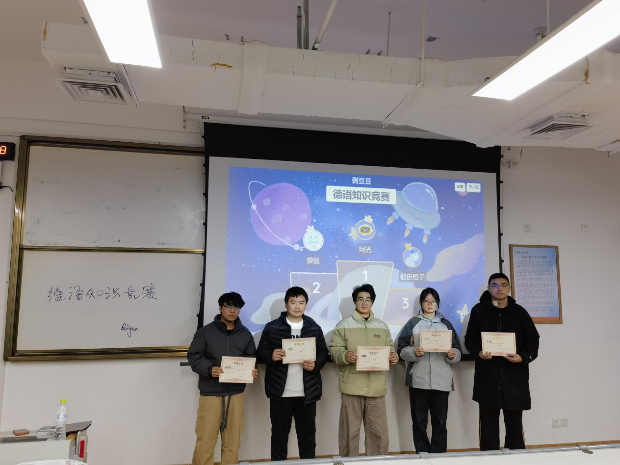 此次德语知识竞赛的成功举办,不仅有效检验和提升了学生的综合素养,更在学院营造了浓厚的德语学习氛围。它像一扇窗口,让同学们看到了德语世界的丰富多彩;它也像一座桥梁,连接了课堂内的扎实学习与课堂外的拓展探索。我们期待未来有更多同学加入德语学习的行列,在语言的海洋中畅游,在文化的天空中翱翔。未来,学院将定期举办德语角活动,为同学们带来更多样化的中德文化互动体验!